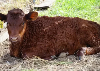 Sussex bulls contribute to producing consistent calves with a low fat cover, ideal for grazing or feedlotting. They also possess a placid nature, resulting in less stressed animals, which is crucial for optimal meat quality. Another remarkable characteristic of Sussex cattle is their high number of sweat glands, surpassing any other breed.